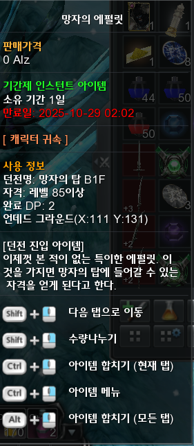 경우에도 캐릭귀속 계정귀속일때 합쳐지지 않기 때문에 보통은 활용도가 적은 캐릭터귀속 아이템이 먼저 소모되는게 좋습니다