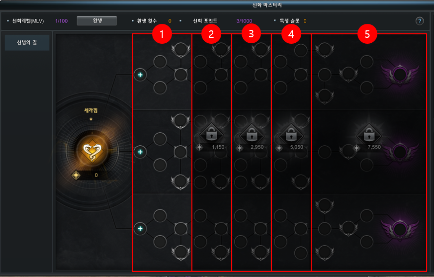 | 1 | 신화 레벨 | MLv.1~100까지 존재하며, 환생 시 1로 초기화 된다. |