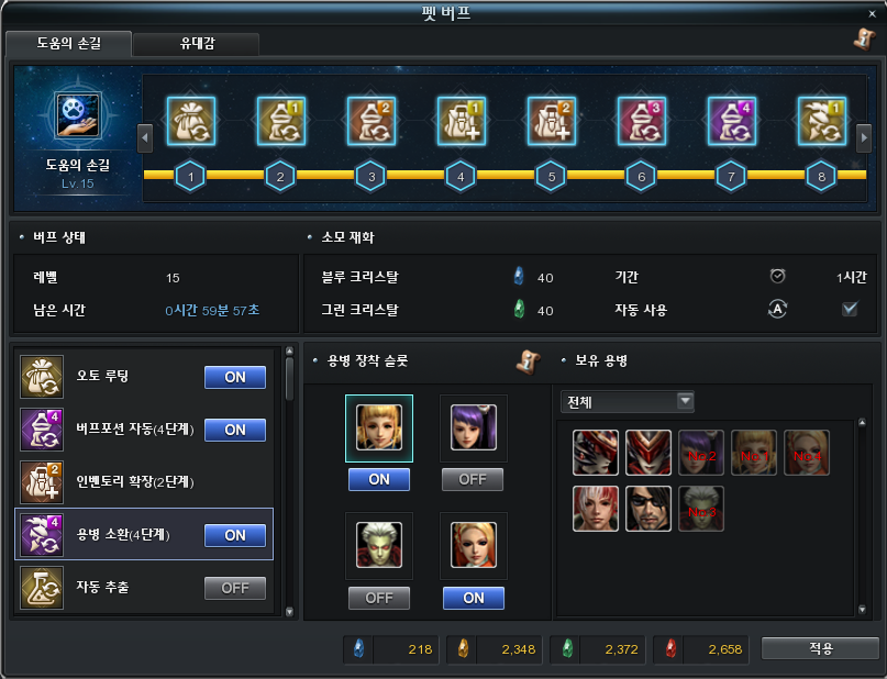 ii) 버프포션 자동, 용병 소환, 펫 특성